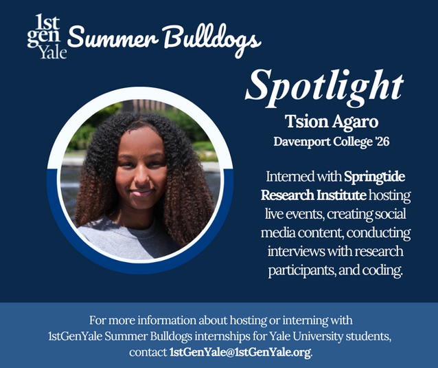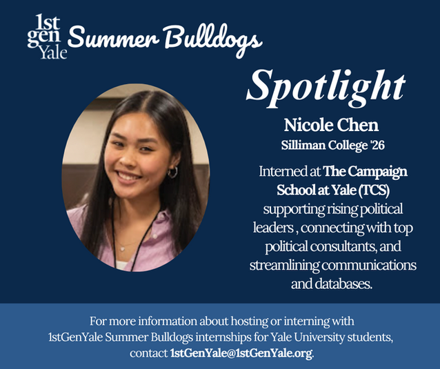 Since 2020, 309 1stGenYale Summer Bulldogs interns have worked in 155+ nonprofits, government and public service, the arts, education, STEM research, and for-profit companies. Most of our program's students have benefitted from $1.12 million in fellowships and awards Yale has resourced for their summers, providing them an outstanding opportunity to work at organizations that would not otherwise be able to pay enough.